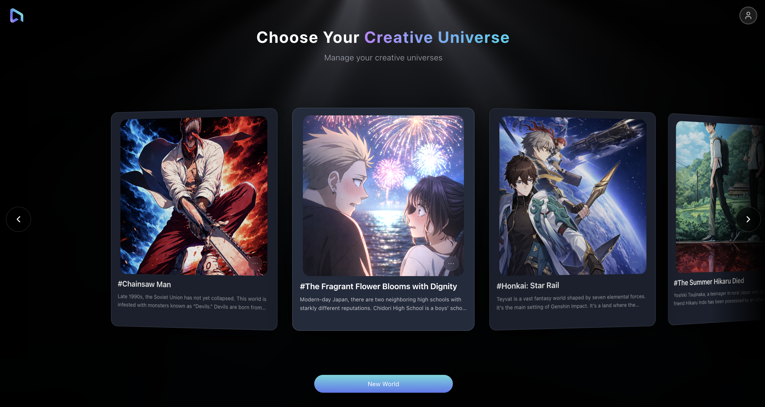 - Go to the Worlds page and click New World.