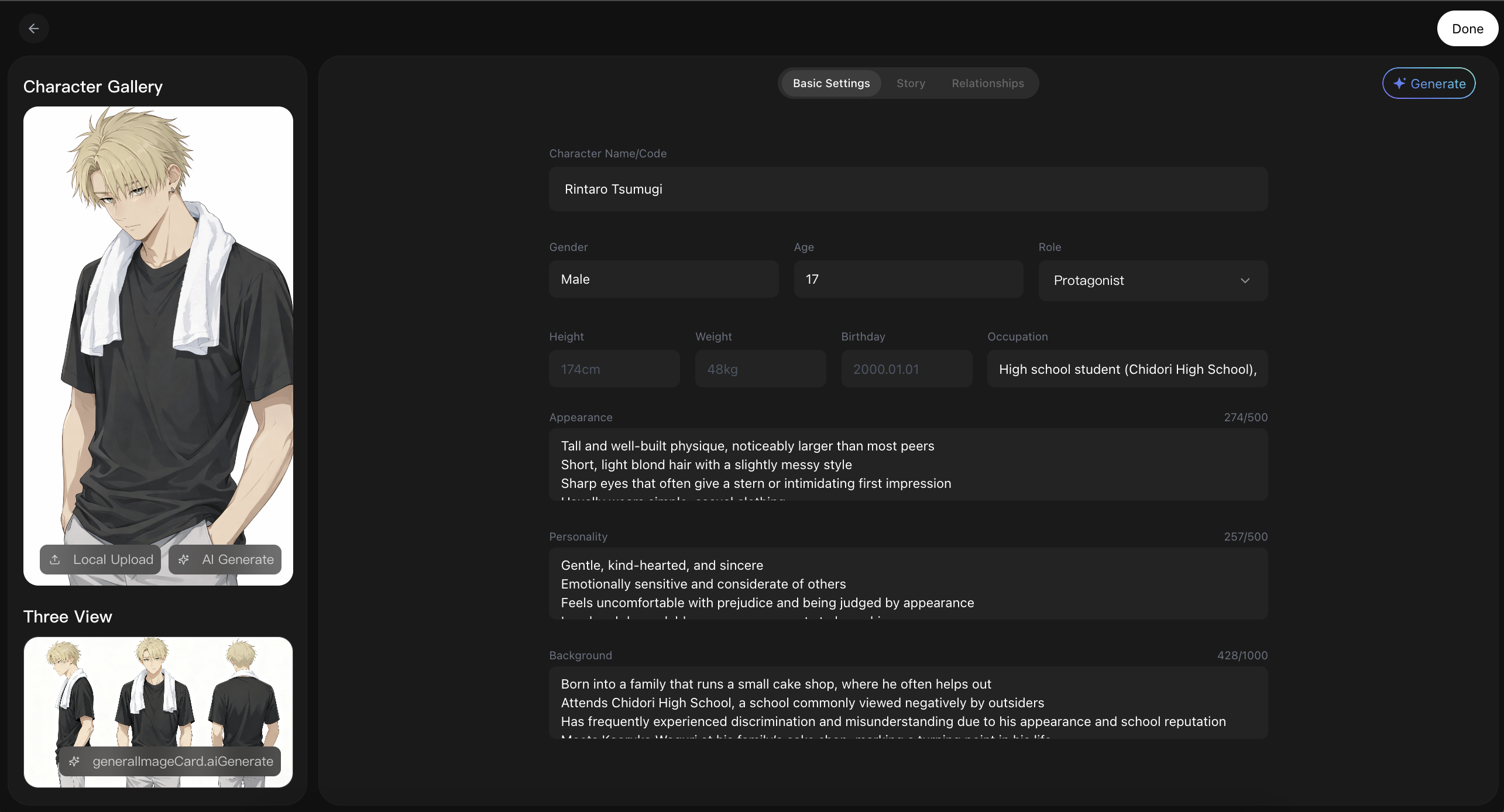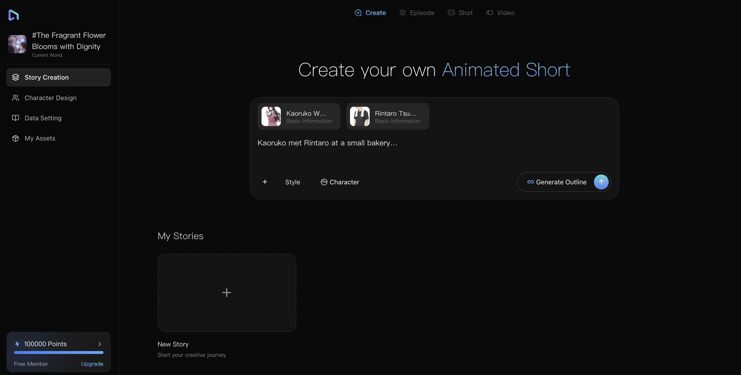 When you're ready, switch to the Story Creation page and start building an episode using your characters.
